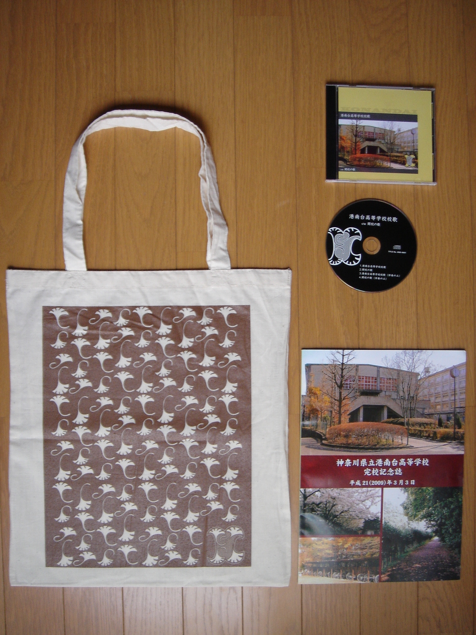 ・エコバック(いちょうの模様、さりげなく右下に校章)