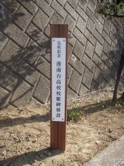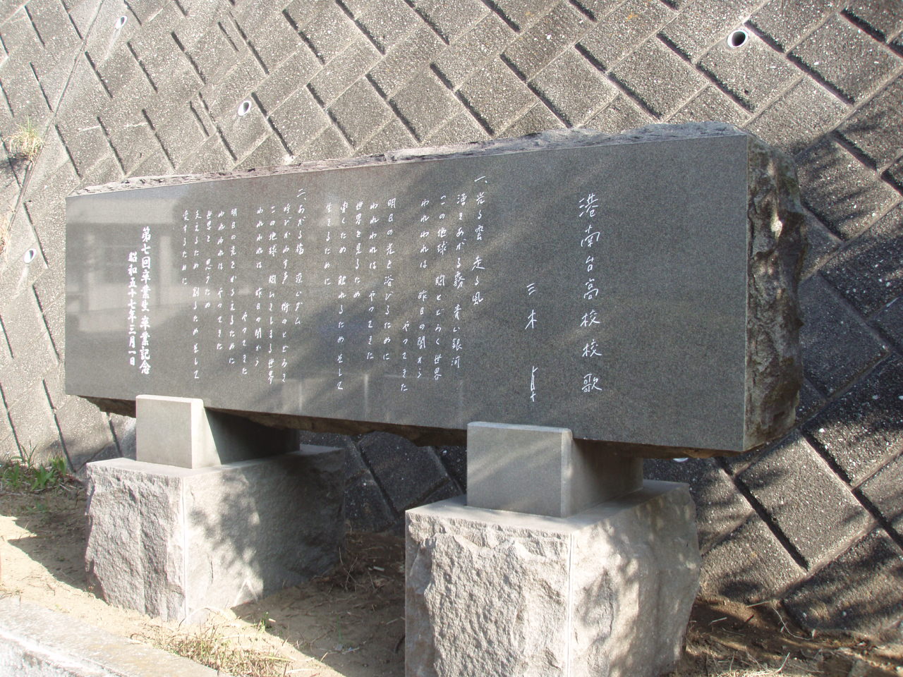 完校記念事業の一環として2009年3月末に港南台高校校歌碑を横浜栄高校(旧 上郷高校)に移設しました。移設に尽力して下さった 2期生 柴田泰さん(元 同窓会会長)と3期生 岡田洋子さん(前 港南台高校教諭)ありがとうございました。